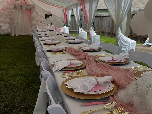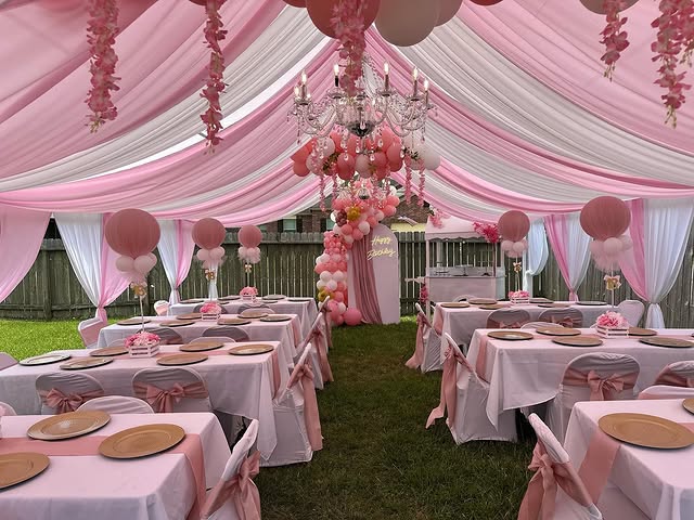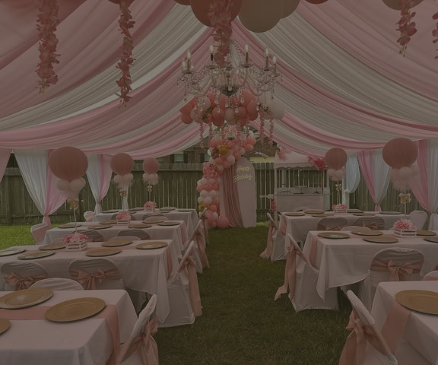 Whether you’re planning a small backyard birthday or a luxury wedding with chandeliers and drapes, our mission is simple: we do all the setup and décor so you can relax and actually enjoy your event.